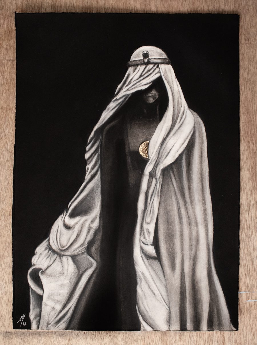 Ink, charcoal, chalk, pastel. fineliner with underprint on Fabriano Artistico 640gsm HP, matt varnished, UV sealed