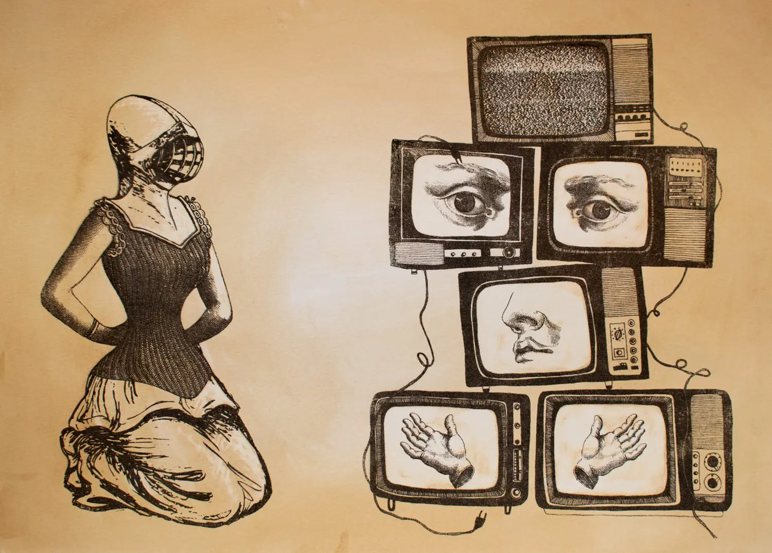 Original artwork, created on Arches 300gsm HP Watercolour paper, using inks, hand-printing, watercolour and mixed media.