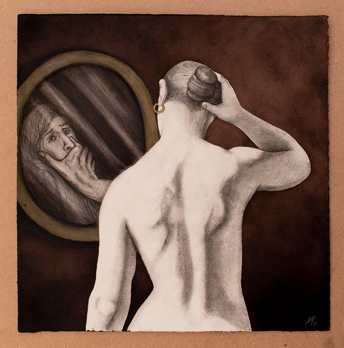 Inks, charcoal and mixed media with underprint on Fabriano Artistico 640gsm HP Watercolour paper.